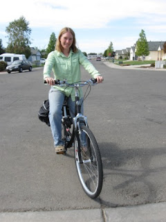 (pictured: Me on my new bike. I bought it in preparation for going to school, but also because I miss being able to hop on a bike and do my errands in town. I hate starting up my 3/4 ton just to drive 3 miles to the grocery store, which is too far to walk, but really to short to drive.)
