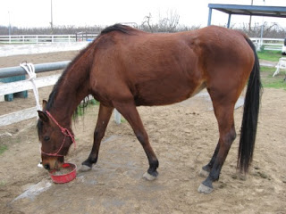My current location is the best place around for me to board, and unfortunately, I think that when you board horses, definatley some trade-offs and you have to give up some control usually (unless you have lots of options and lots of $$$). Currently she is only 6 miles away from my residence and the board is very reasonable. Because of this I can see her everyday and keep and eye on her, make sure the hay ration is appropriate etc. I could probably do an entire post on this! I want her to be in a pasture, but no one feeds on pasture around here, so she is in a fairly large dry paddock instead. I could move her to a different facility that fed hay 3 times a day, may be more accomodating etc, but the pens are much smaller, the facility is further away etc. So, I pick my battles, decide what really matters to me and work around the limitations.