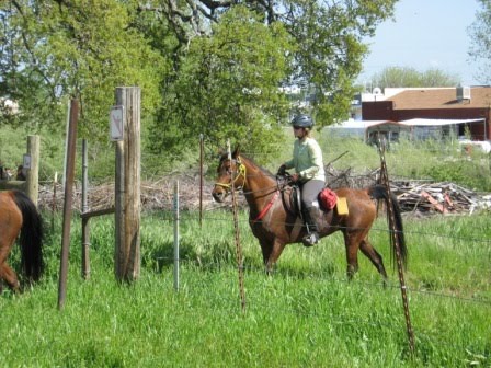 Melinda mounts and tries to keep things down to a dull roar. WHY am I leaning FORWARD? At least I’m not in a chair seat. This just might be the first ride pic EVER where my leg is acutally back.