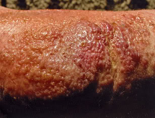 And lastly, in the jaw region….add a bit of this.  Oozing.  All the time in great big drips.  I can literally feel the new areas of skin bursting open and adding their trail of tears to the waterfall.