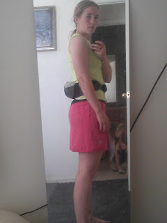 -My rather smallish smart phone (LG, approximately the same size as an ipod touch) will NOT fit into any of the pockets. Pockets are big enough for concentrated energy such as Gu’s, nuts, blocks and the like. Not for the person that carries the kitchen sink and looks like a kamakazi bomber running down the road with a multitude of bottles in belts and keys and catered meals hanging of their person. Also not for the person that has to be super prepared and carry EVERYTHING for herself and everyone else on the trail “just in case” (Mom….).