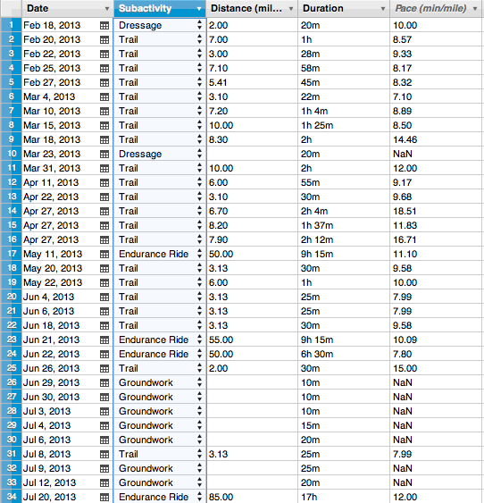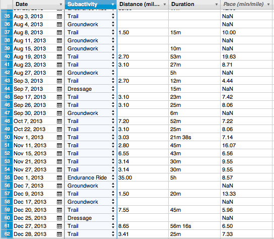 Below is the first screen shot of my riding year. I managed to get the beginning of the year through Tevis in this shot. No, I didn’t ride in 2013 before Feb 18…..